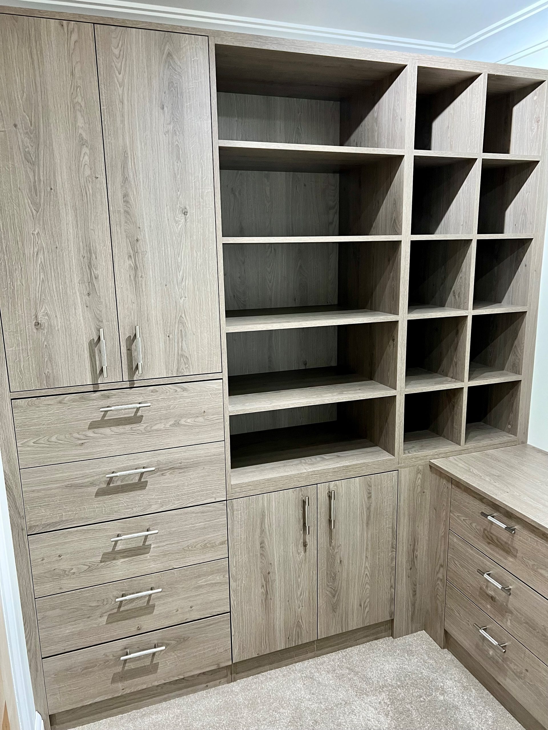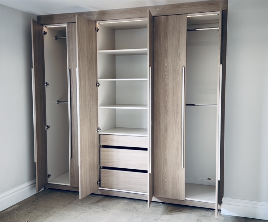 With over 40 years combined experience our factory manager Alan and his team use our Saw and CNC machinery to accurately cut and shape all of our components, from cabinet panels to intricate moldings. This machinery allows us to achieve precision and consistency across all units, guaranteeing a perfect fit and flawless finish. Following cutting, our expert craftsmen meticulously assemble each piece, adding BLUM hardware and fittings for durability and ease of use. Once assembled, each kitchen and bedroom set undergoes rigorous quality checks to ensure it meets our exacting standards